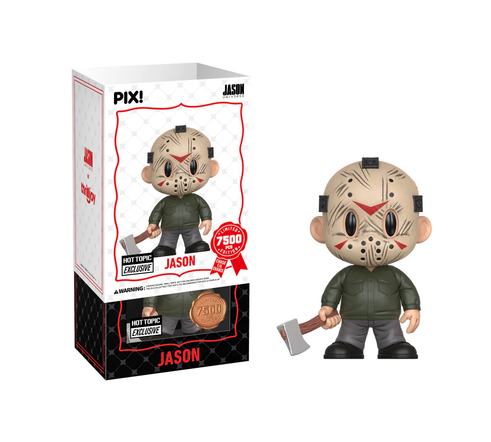 Jason may be silent, but I bet you’re screaming for this PIX!. Featuring Jasonin his terrifying hockey mask, holding an axe and ready to slash a pathstraight to your shelves. This PIX! is perfect for fans who love a classic horrorfilm!